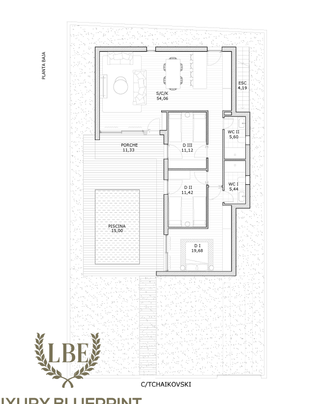 moderno de líneas elegantes, construidas en una única planta de ciento