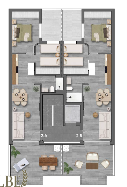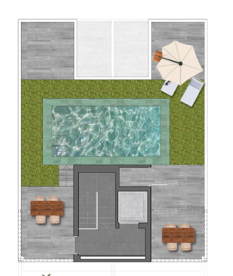 El residencial cuenta con piscina comunitaria de diseño rodeada de zona de solárium con tumbonas, creando ese ambiente resort que te permite refrescarte sin salir de casa, mientras que las zonas ajardinadas con vegetación mediterránea de bajo mantenimiento aportan frescor, color y ese toque de naturaleza que completa la experiencia de vivir junto al mar.