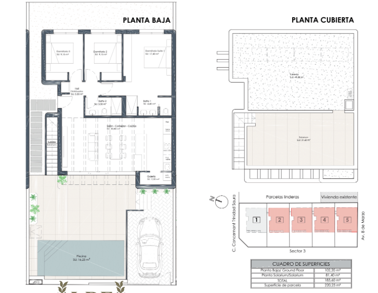 Las superficies construidas de hasta 123 m² se distribuyen en parcelas privadas de hasta 229 m², garantizando intimidad y espacio exterior. Cada villa incluye parking privado, jardín individual y la posibilidad de ampliar con un sótano o un impresionante solárium con cocina exterior.