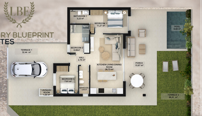 Descubra un enclave residencial único en la Costa Blanca, donde la elegancia y el confort se fusionan a tan solo 400 metros de la Playa de las Higuericas. Este exclusivo complejo ofrece viviendas de 3 dormitorios y 2 baños, diseñadas para satisfacer las necesidades más exigentes. Podrá elegir entre bungalows en planta baja con jardín privado y piscina, bungalows en planta alta con terraza y solárium, chalets adosados con terrazas delanteras y traseras, y villas independientes con amplios espacios y jardines privados.