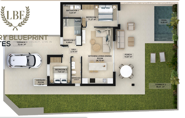 Cada vivienda ha sido construida con materiales de alta calidad, incluyendo suelo radiante en baños, salón y cocina, preinstalación de aire acondicionado por conductos y cocina amueblada con electrodomésticos de última generación. Además, todas cuentan con piscina privada y plaza de aparcamiento, garantizando privacidad y comodidad en cada detalle.