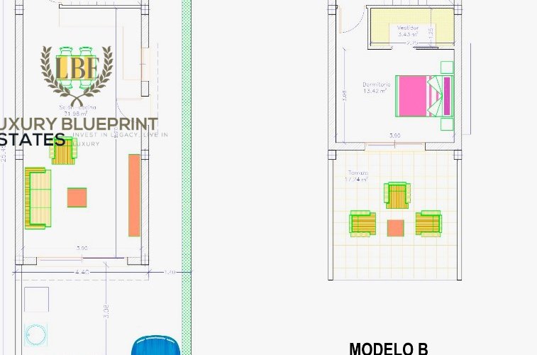 Cada vivienda ha sido construida con materiales de alta calidad, incluyendo suelo radiante en baños, salón y cocina, preinstalación de aire acondicionado por conductos y cocina amueblada con electrodomésticos de última generación. Además, todas cuentan con piscina privada y plaza de aparcamiento, garantizando privacidad y comodidad en cada detalle.